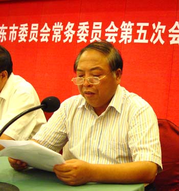 市政协副秘书长王平宣读《关于加快制定我市农业发展规划的建议案(草案)》,市委统战部部长朱家鼎在会上作部分委员任免情况说明