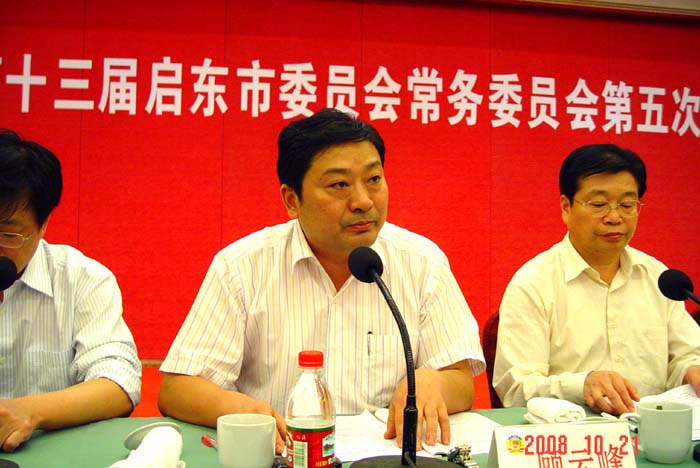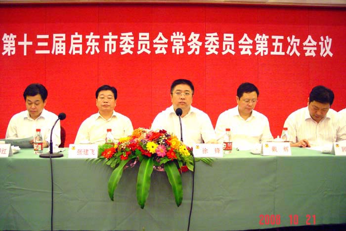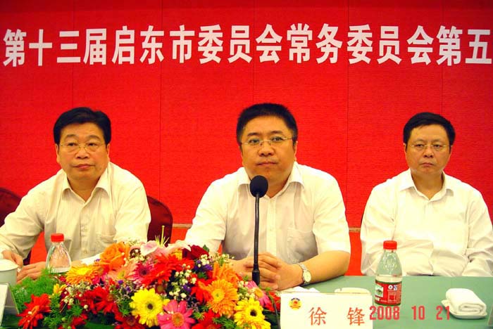 中共启东市委副书记、代市长徐锋,副书记戴辉,市人大副主任潘国红,市政府副市长顾云峰参加会议
