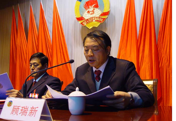 大会秘书长顾瑞新向大会作关于十三届二次会议筹备工作情况报告