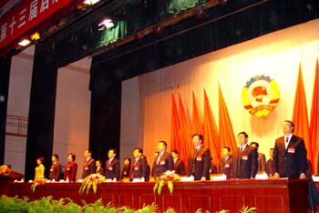 下午1:30分大会在庄严的国歌声中隆重开幕