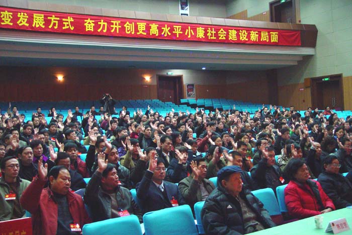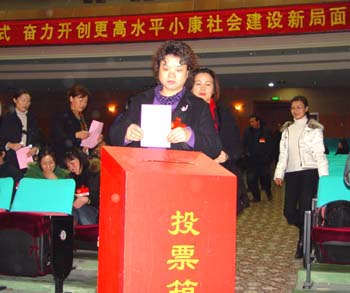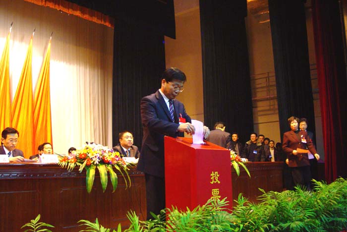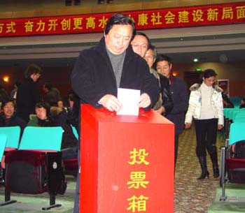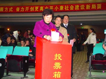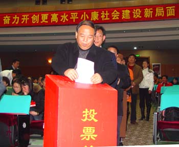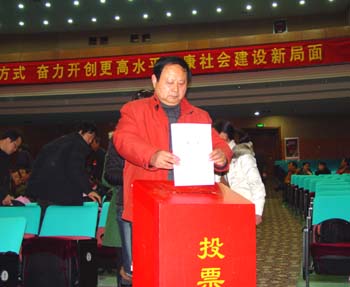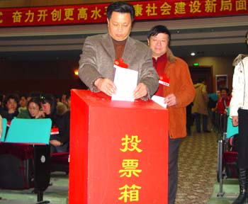 会议选举市政协副主席一名,秘书长一名,常务委员7名,图为委员们投票。
