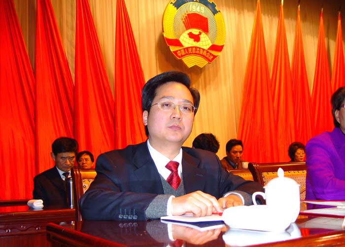 新当选市政协秘书长唐海兵同志在主席台前排就座