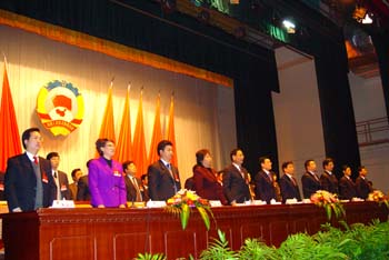 大会在庄严的国歌声中胜利闭幕
