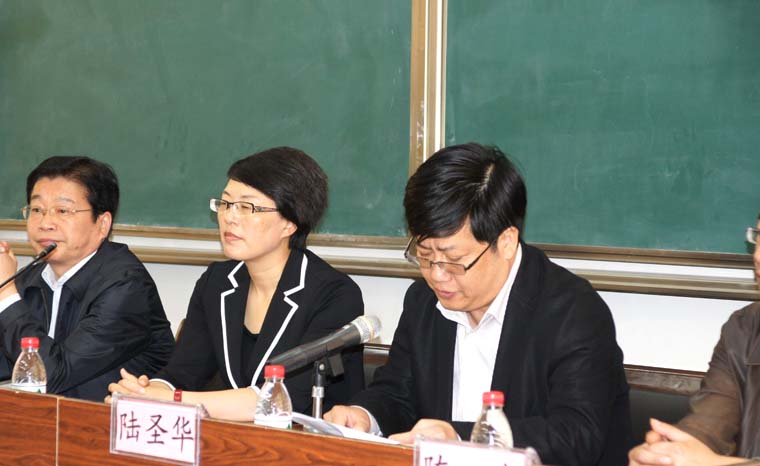 市教育局局长陆圣华在捐赠仪式上代表受赠学校讲话