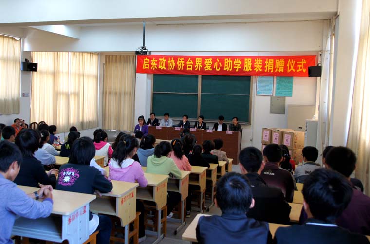 政协侨台界服装捐赠仪式在晨曦中学多媒体教室举行