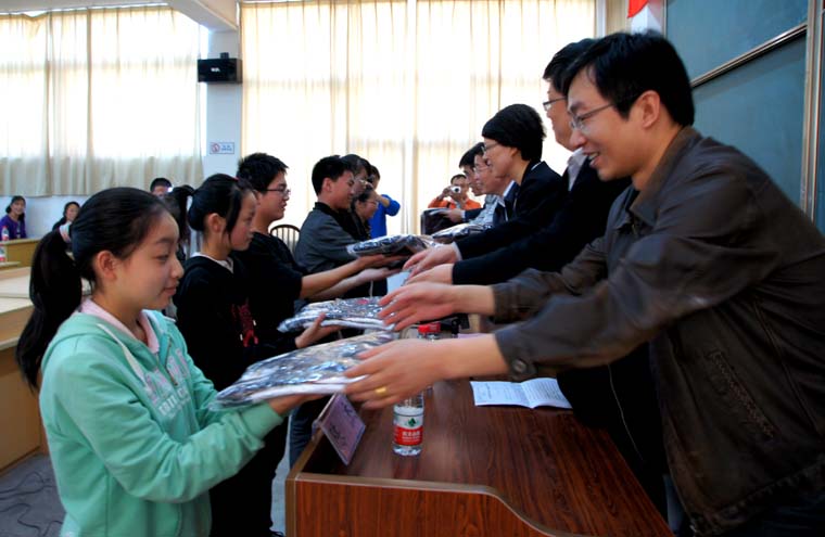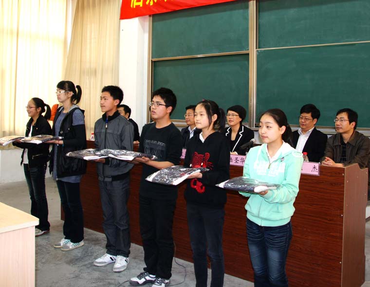 市政协领导等代表侨台界委员向学生代表授赠服装