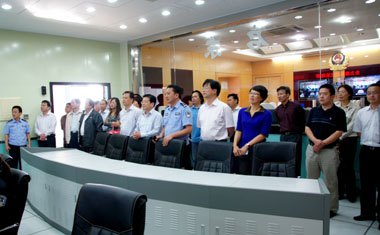 市政协视察组一行首先到公安局指挥中心观看公安指挥系统运行情况