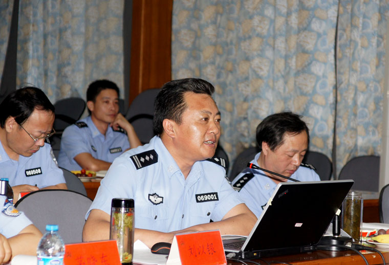 市政府副市长、公安局局长刘以银向视察组汇报全市公安工作情况