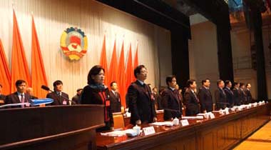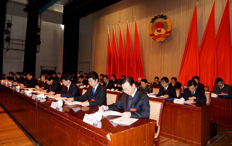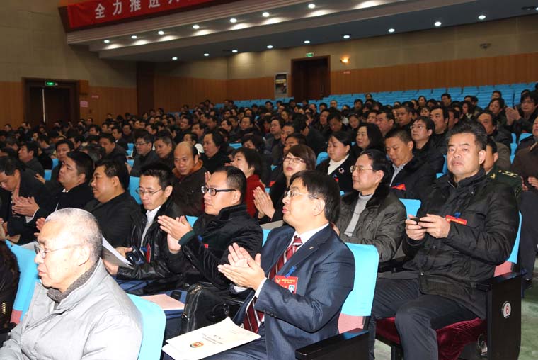2013年1月11日市政协十四届二次会议在市会议中心召开,图为大会会场。