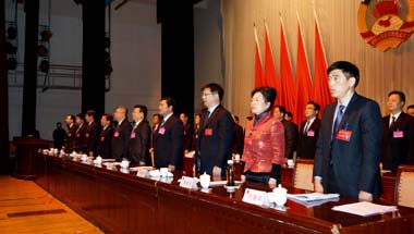 大会在雄壮的国歌声中,圆满完成了各项议程胜利闭幕