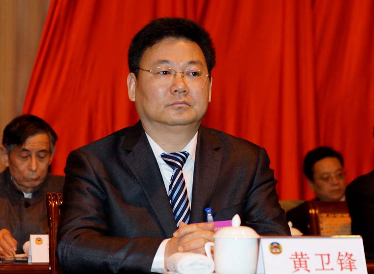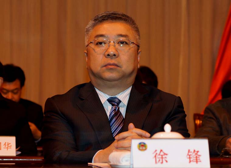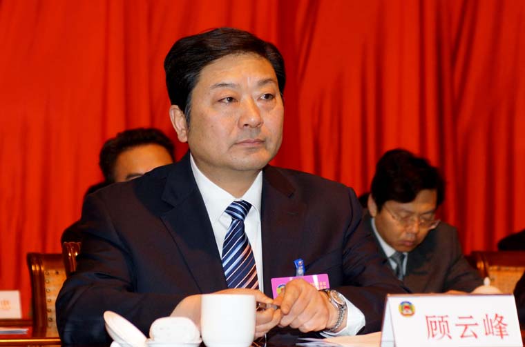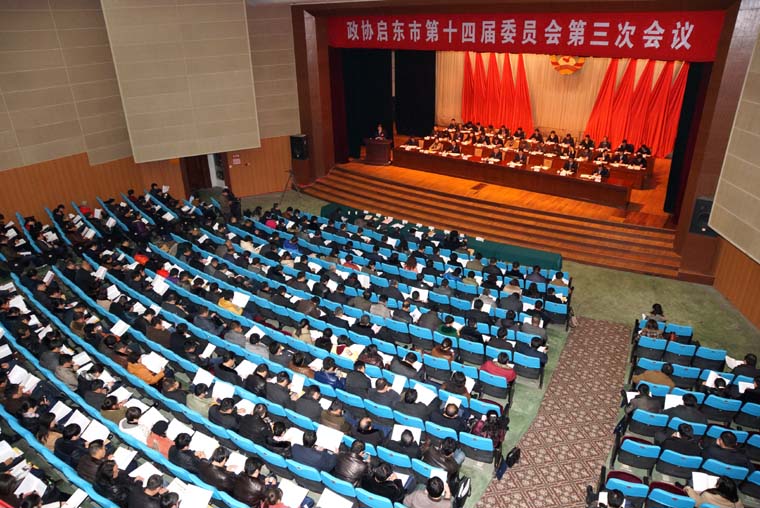 中共启东市委书记徐锋、副书记代市长黄卫锋、副书记顾云峰在主席台前排就座