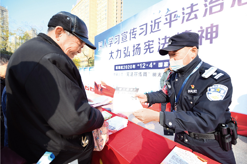 2020年12月4日,在第七个“国家宪法日”,安徽省合肥市开展“深入学习宣传习近平法治思想,大力弘扬宪法精神”主题宣传活动。 中新社发 瑶海骏马/摄